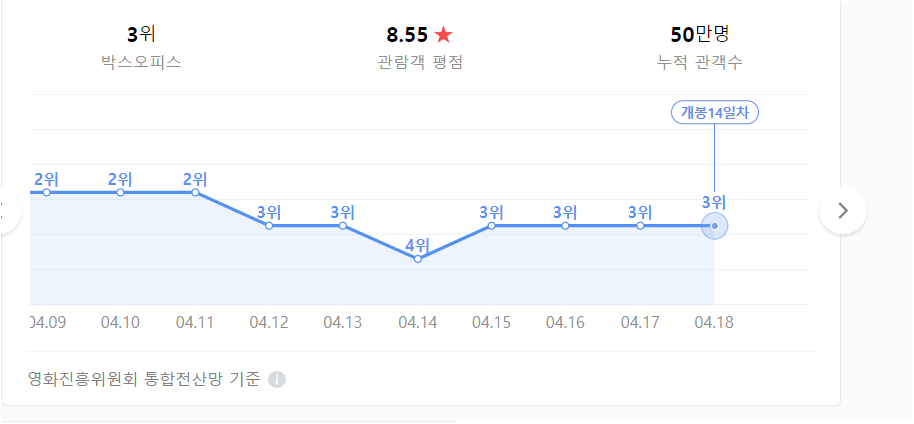 관객 평점도 좋아서.... 벌써 킬링 로맨스를 앞질렀다.